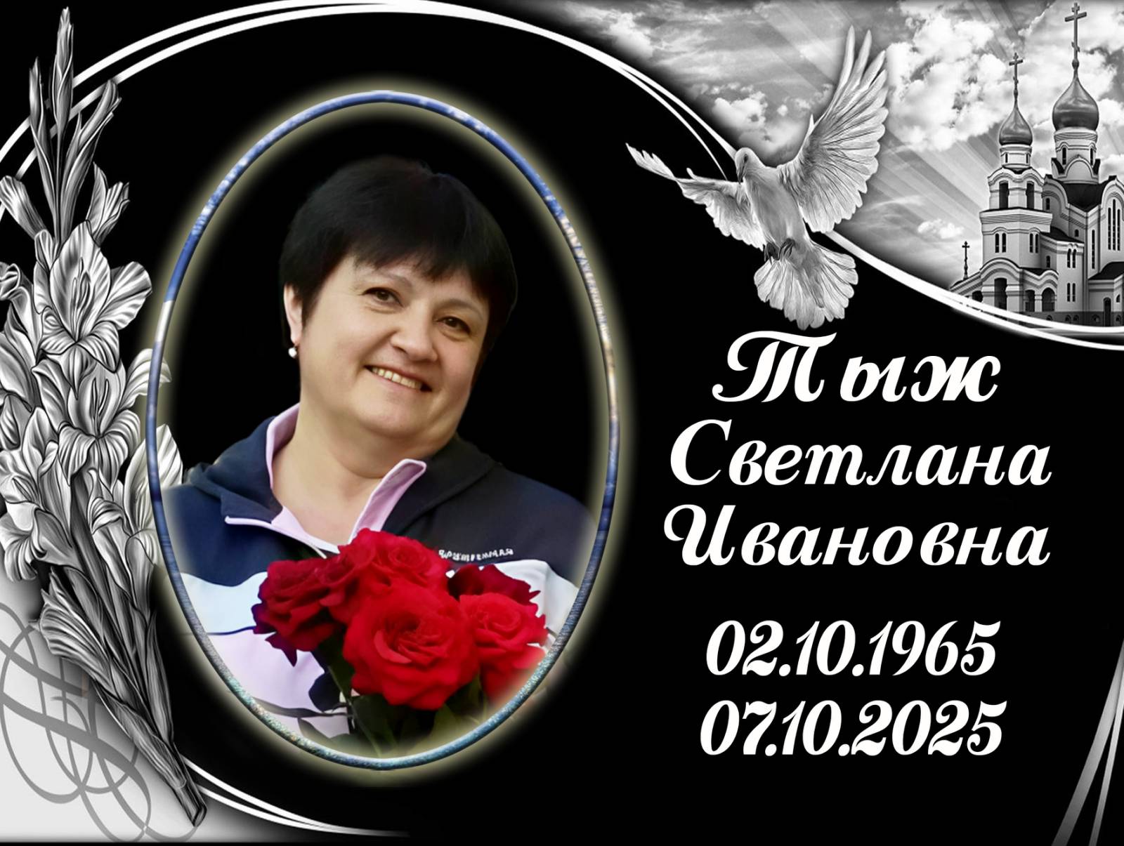 Cu profund regret anunțăm trecerea în neființă a celei care a fost TÎJ SVETLANA Doritorii de a-și lua rămas bun