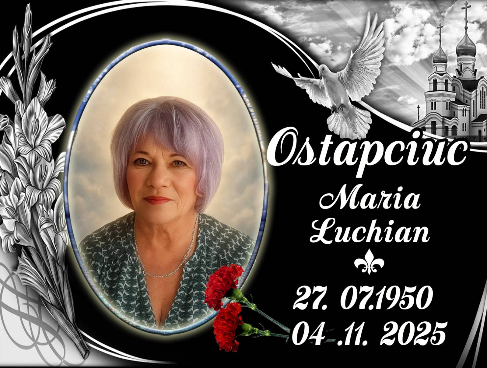 Cu profund regret anunțăm trecerea în neființă a celei care a fost Ostapciuc Maria. Doritorii de a-și lua rămas bun