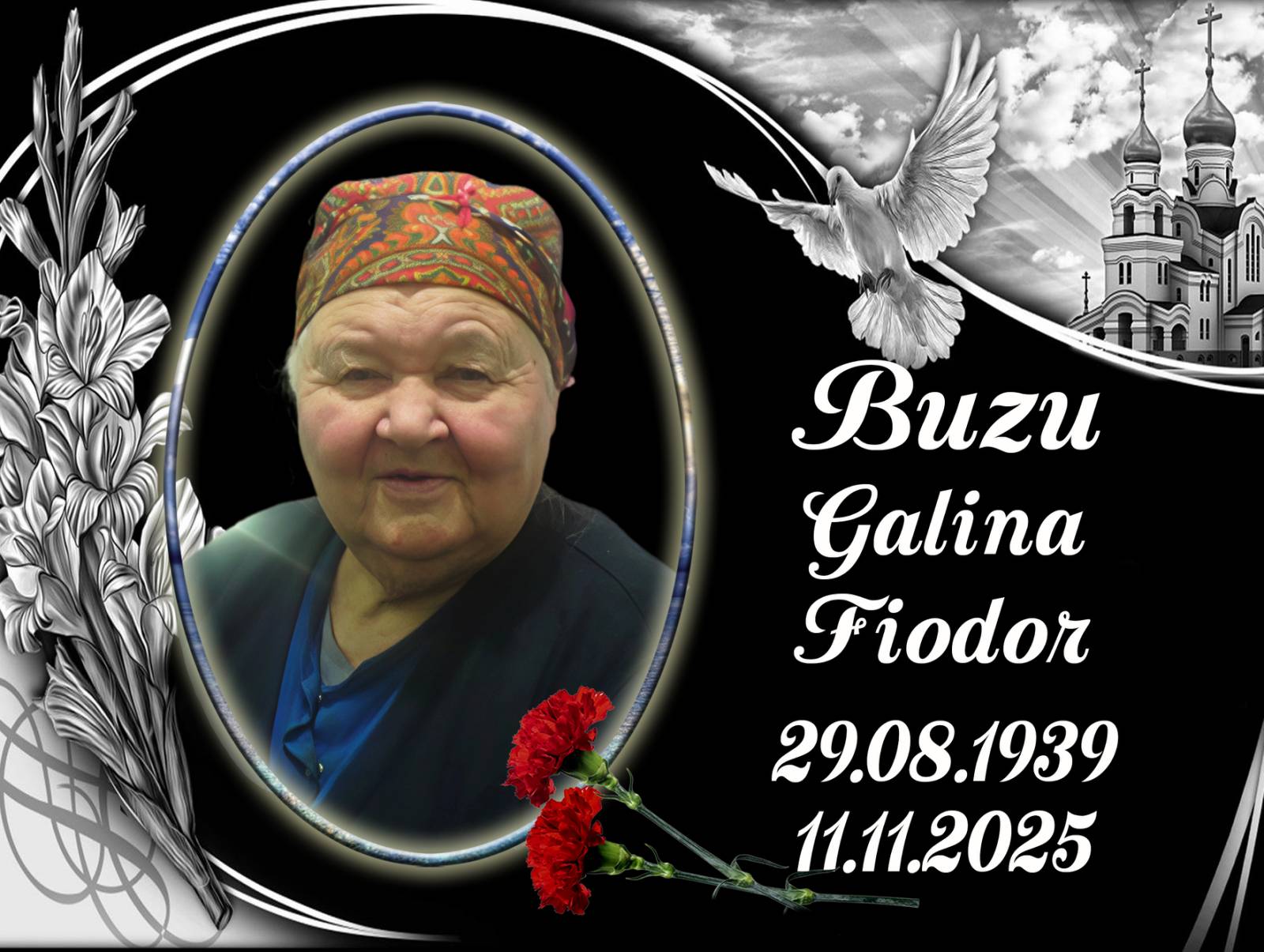 Cu profund regret anunțăm trecerea în neființă a celei care a fost BUZU Galina. Doritorii de a-și lua rămas bun